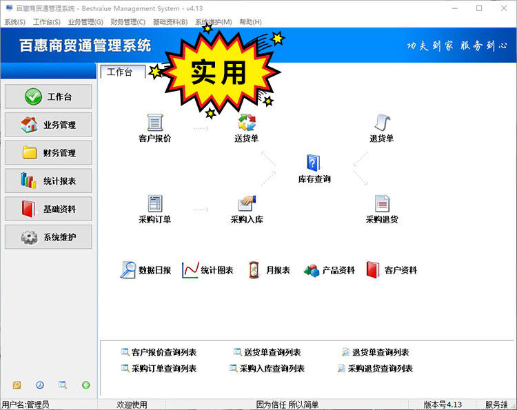 单机版进销存软件可以快速实施使用,不用设置用户和权限,使用更简单,没有网络也可以使用,投入成本更低,适用于一些对数据安全性要求较高、不需要远程协作和具有较简单管理需求的中小型企业,特别适合微型企业、个体工商户、个人等。