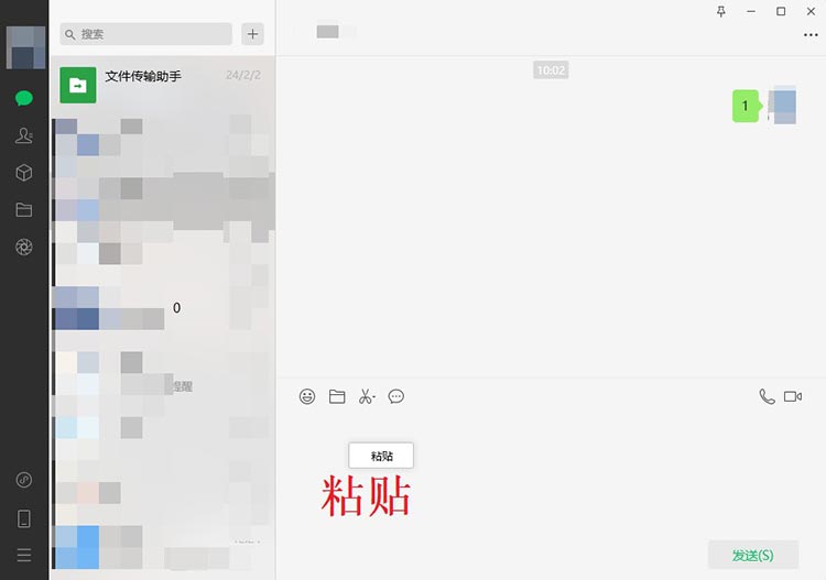 打开好友聊天窗口,在对话发送框中点击鼠标右键,然后选择“粘贴”,看到发送的送货单图片,点击发送,即可成功发送图片给好友。